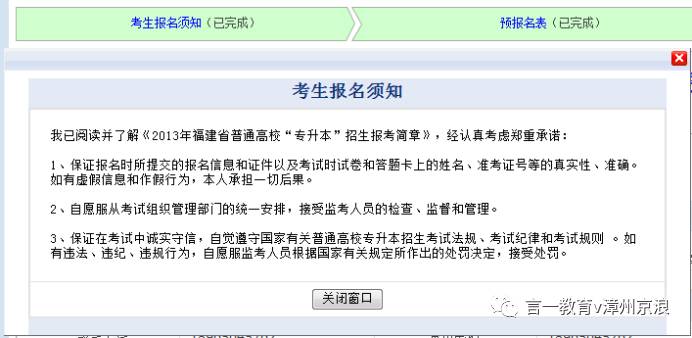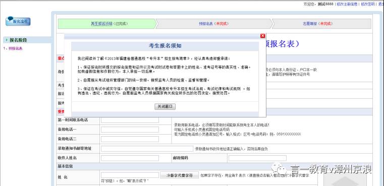 步骤二:进入预报名表界面,阅读报名流程及考生须知,阅读完毕可以关闭窗口,进行报名表信息填写。