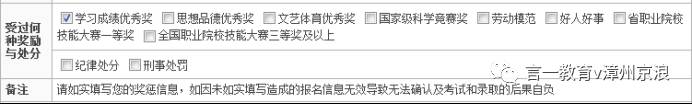 8.请如实填写奖惩情况信息,如省职业院校技能大赛一等奖、全国职业院校技能大赛三等奖及以上必须如实填写,因未如实填写造成的报名信息无效导致无法确认及考试和录取的后果自负。