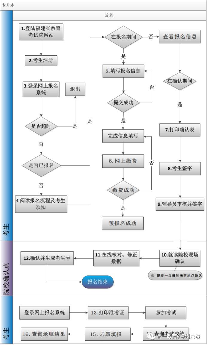 1、普通考生确认:考生打印预报名信息后,签名后到所属辅导员处进行签名确认,持身份证到院校确认点进行进一步确认,如考生未在确认期间完成确认,后果自负。