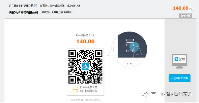 2)点击【登录网上银行付款】,扫描支付宝二维码进行缴费;
