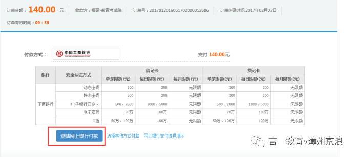 2)点击【登录网上银行付款】,也可先观看网上银行支付流程演示再登录网上银行进行付款