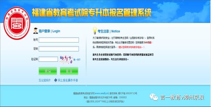 步骤四:进入福建省教育考试院专升本报名管理系统,如下图: